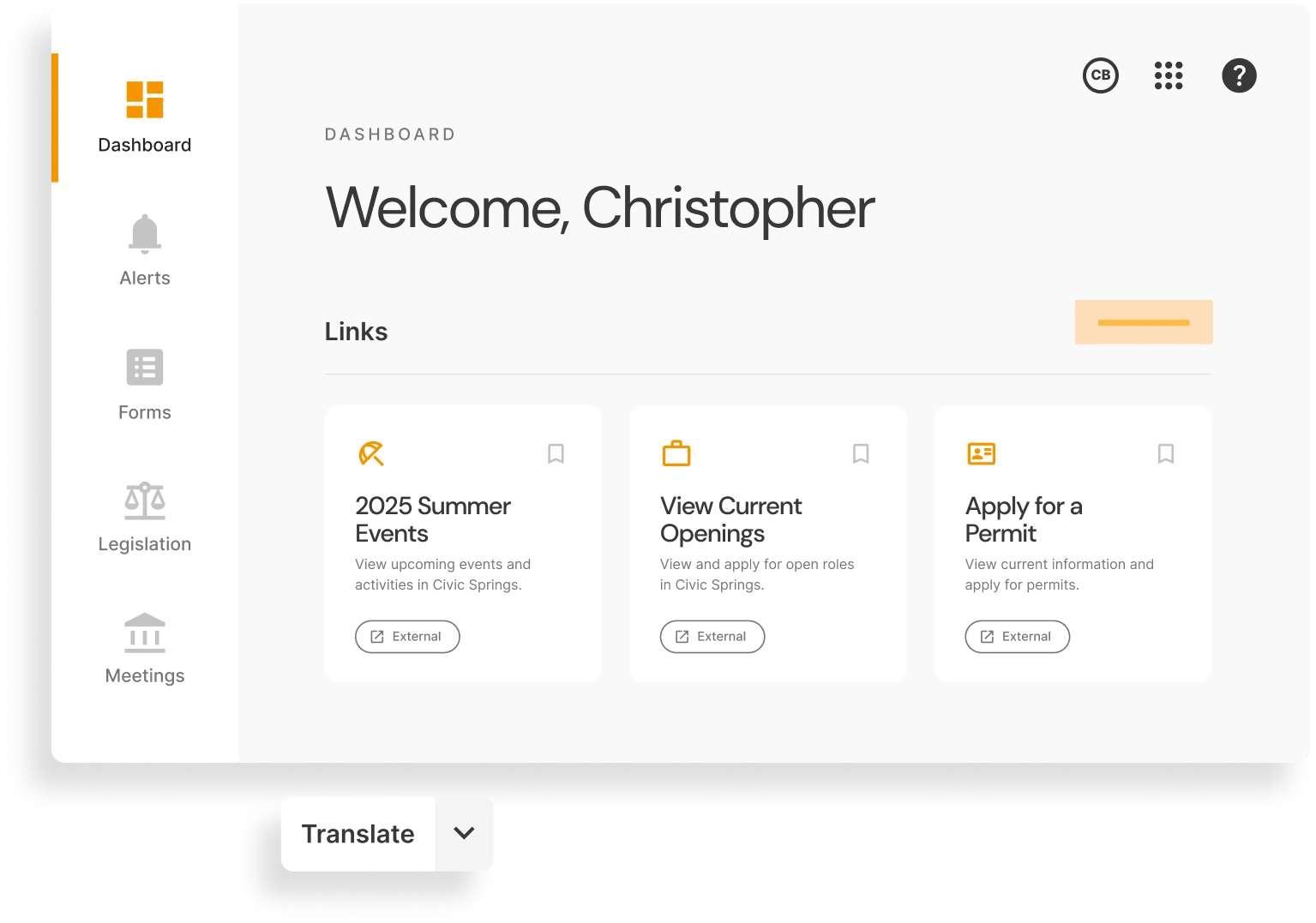 Our government technology platform empowers residents to find answers, submit forms, access agendas, sign up for mass notification messages in the right language, and more—all with a single sign-on and profile.