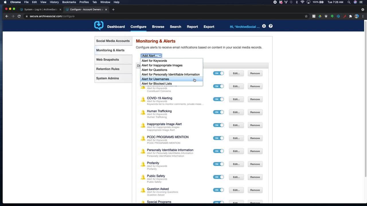Unleash the power of the data in your archive with social media monitoring, alerts, and reports