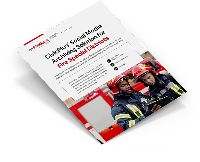 Download the fact sheet now to learn more about the CivicPlus Social Media Archiving solution and its many benefits for fire special districts.