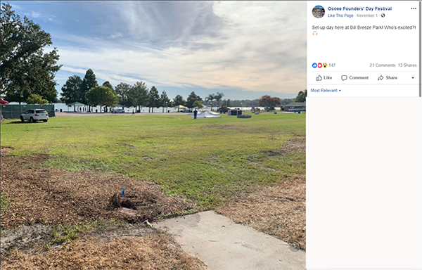 The Facebook 360 Photo feature allows users to create and share immersive imagery as individuals travel and experience once-in-a-lifetime moments. After a 360 image is posted to Facebook, followers can click on the image and use their mouse or finger to move the image directionally. As they move, the image does, too, allowing them to experience a 360 panorama. In the City of Ocoee, FL, for example, Facebook followers could take a peek at the Ocoee Founder’s Day Festival set-up using this 360-degree functionality.