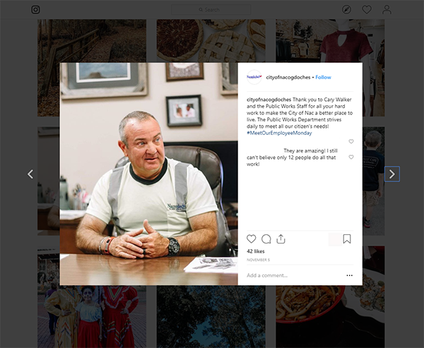 While mayors, clerks, and county executives are very visible and recognizable public officials, some hard-working local government employees aren’t always as well known by their residents, which can make it difficult for residents to say thank you. For example, the City of Nacogdoches, TX, used Instagram to thank its hard-working public works staff for their hard work.