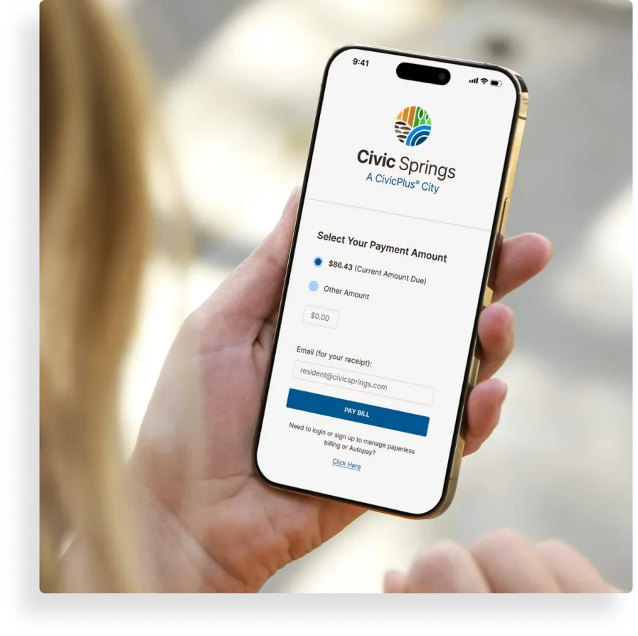 CivicPlus® Utility Billing helps local governments streamline billing, payments, and fieldwork in one modern platform, so they can collect revenue faster, cut manual work, and deliver better service.