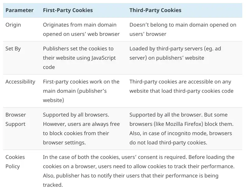 A variety of cookies may exist on websites, and they generally fall into two categories: first-party and third-party.