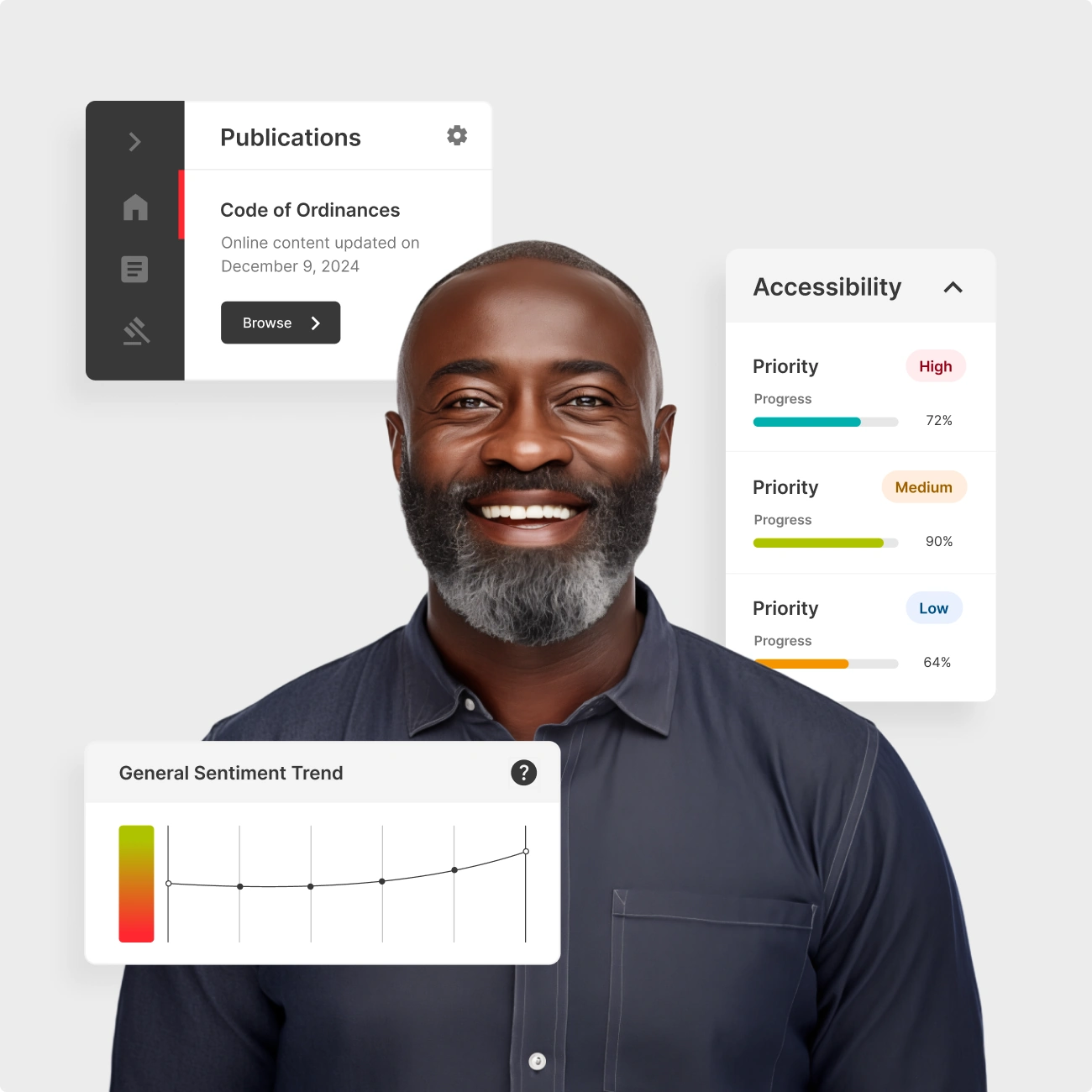 With clear audit trails, the latest security, and flexibility to evolve with the times, our solutions continuously innovate to ensure governments of all sizes can handle compliance, accessibility, emergencies, and growth.