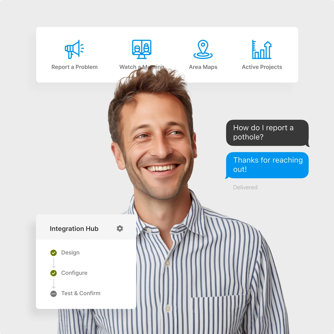 Our government technology platform empowers residents to find answers, submit forms, access agendas, sign up for mass notification messages in the right language, and more—all with a single sign-on and profile.