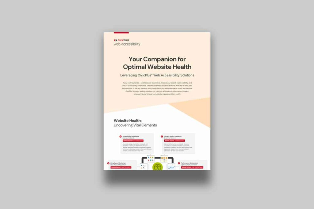 Local governments face increasing compliance challenges as they work to deliver inclusive experiences and meet WCAG 2.1 accessibility standards. Whether you’re looking for hands-off web accessibility remediation, PDF accessibility, or long-term website health optimization, CivicPlus® helps you easily align with ADA standards and deliver more inclusive experiences for all.