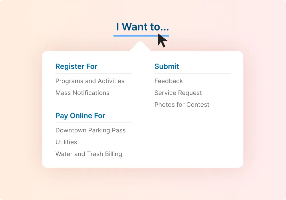Provide residents with a single, trusted source of truth and service, making it easier for residents to independently find information, pay bills, submit applications, report issues, and more.