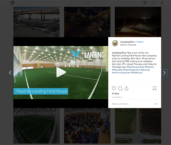 Residents value seeing their tax dollars put to good use. When your community completes construction on new public facilities, you are proud to show them off, and your community members are pleased to see the results of their community’s investment. In the City of Papillion, Nebraska, for example, the City recently used Instagram to showcase a virtual video tour of its new Papillion Landing Field House. Set to music and expertly edited, the video creates excitement and beautifully showcases the new facility.