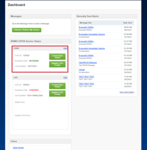 In addition, administrators can send a test message to a specified recipient group and IPAWS using a test certificate. They can also review their test message within the IPAWS message viewer functionality.